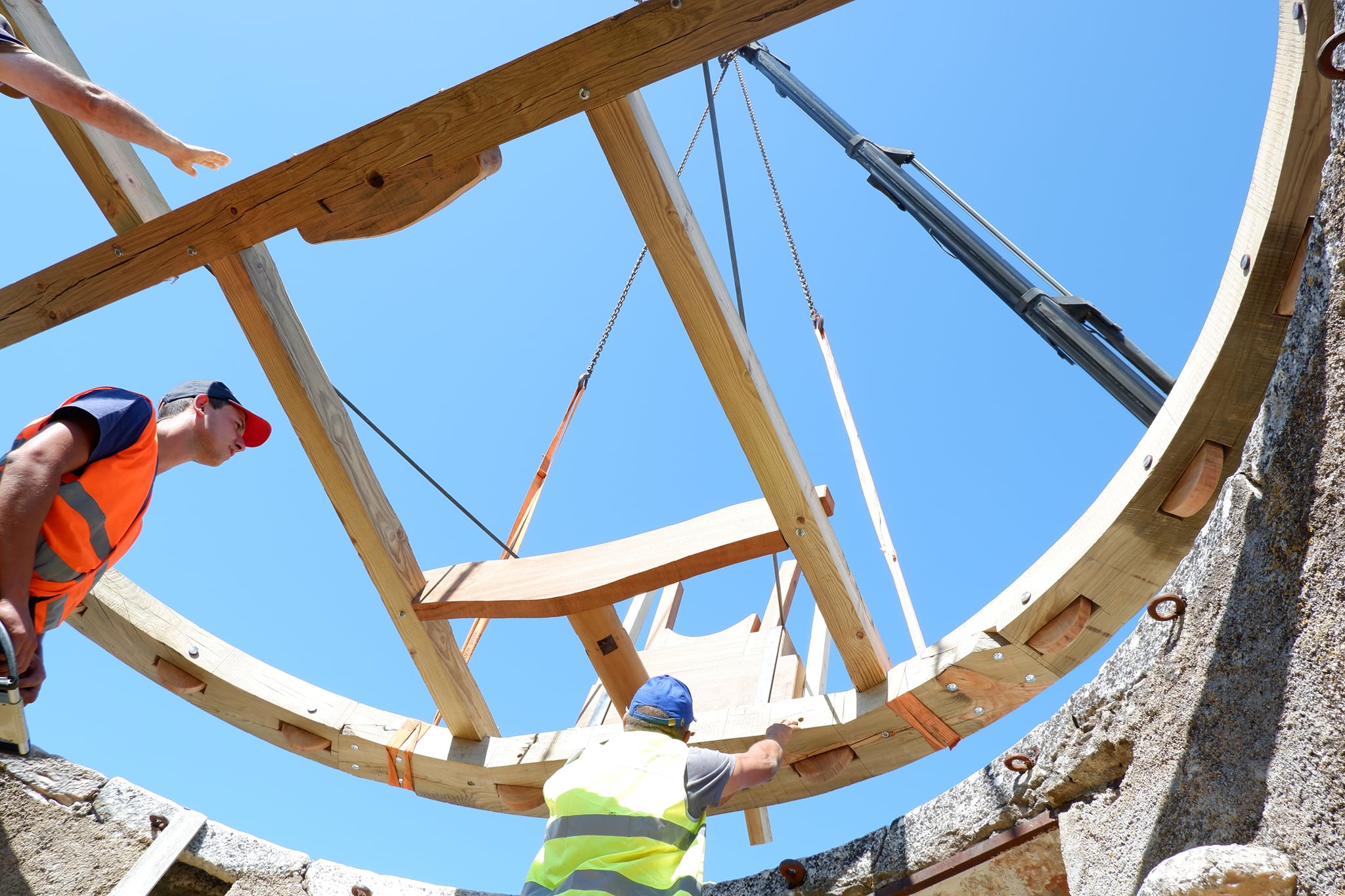 Estão a decorrer até amanhã, 10 de julho, no Alto de São Bento, algumas das mais emblemáticas obras de recuperação de um dos seus moinhos. Merece particular destaque, pelo seu simbolismo, a instalação de todo o 'engenho' em madeira, entrosga, carreto, fechal e mastro, bem como a montagem do capelo. Recorde-se que o moinho será recuperado para a sua função tradicional da moagem de cereal. Deixamos aqui algumas imagens dos trabalhos. O conteúdo Emblemáticas obras de recuperação de um moinho estão em curso no Alto de São Bento aparece primeiro em Portal Institucional.