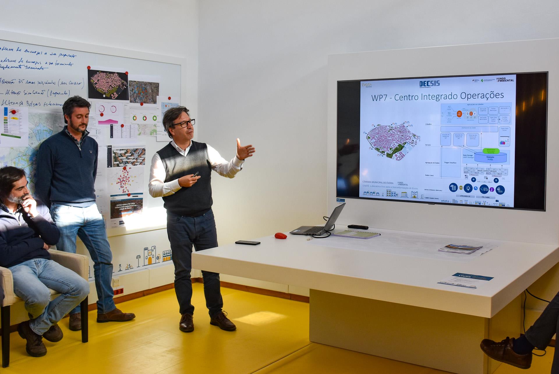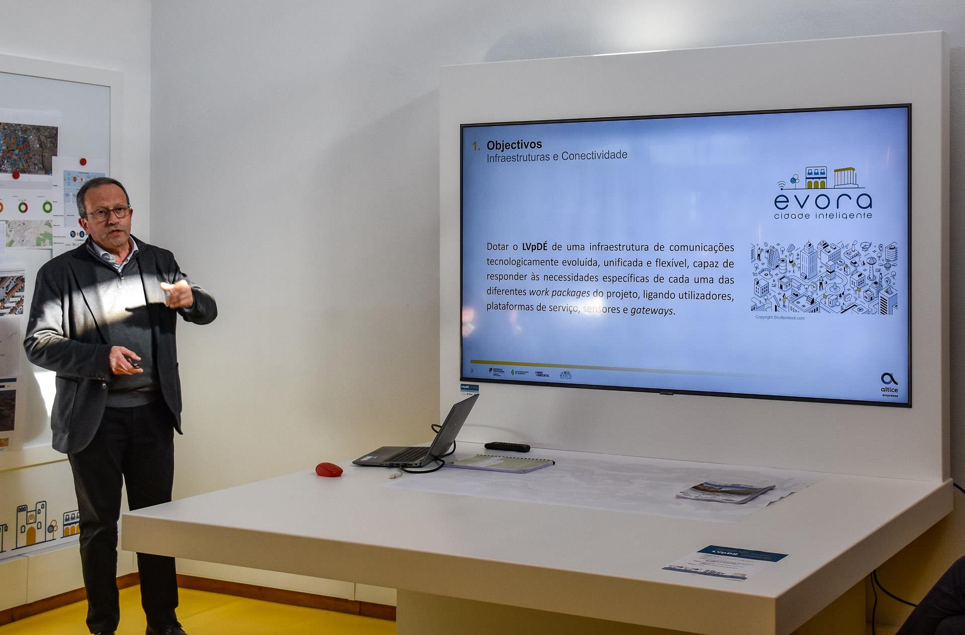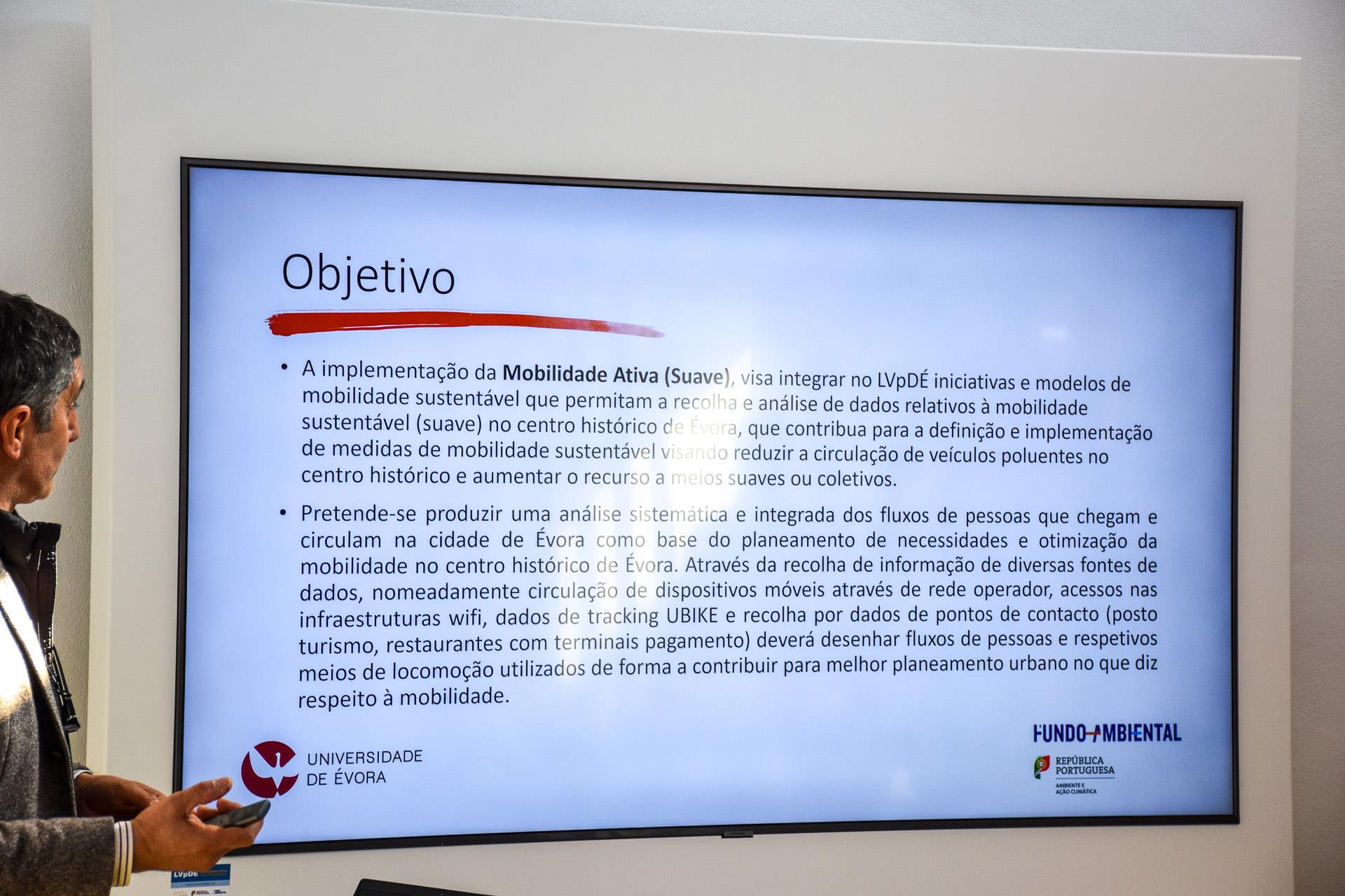 Decorreu no dia 27/02/2023, no Espaço Ambiente, situado na Mata do Jardim Público de Évora, uma sessão de apresentação das atividades desenvolvidas no âmbito do LVpDE, que incluiu a inauguração do 'Zoom Operativo', um espaço tecnologicamente apetrechado e adaptado para interação com a comunidade.O Laboratório Vivo para a Descarbonização de Évora é um Projeto liderado pelo Município de Évora, que tem como foco o centro histórico da Cidade e que visa a implementação e demonstração de soluções tecnológicas inovadoras ligadas aos setores dos transportes e mobilidade, da promoção da eficiência energética e do espaço urbano eficiente.O Vice-Presidente da Câmara Municipal de Évora, Alexandre Varela, também responsável pelo Pelouro do Ambiente, participou na sessão, cabendo-lhe referir a importância do LVpDE no âmbito da estratégia de defesa do ambiente e proteção contra os efeitos nocivos das alterações climáticas, que tem vindo a ser levada à prática pelo Município de Évora, e que se encontra consubstanciada no desenvolvimento de vários programas e projetos, dos quais destacou, entre outros, o POCITYF – Positive Energy CITY Transformation Frameworkfacebook e o Projeto Life Água da Prata.Salientou ainda Alexandre Varela a excelente cooperação institucional que tem permitido unir e concertar meios, conhecimento e competências nas mais diversas áreas, conduzindo a excelentes resultados em torno do objetivo comum de fazer de Évora uma cidade inteligente, eficiente e inovadora em soluções ambientais que garantam já hoje e no futuro, melhor saúde e qualidade de vida para os residentes e visitantes.Para além da Câmara Municipal de Évora, as entidades parceiras – ADRAL (Agência de Desenvolvimento Regional do Alentejo); LOGISTEMA (Consultores de Logística); DALOOP (Soluções de Mobilidade); Universidade de Évora; ALTICE (Telecomunicações); DECSIS (Sistemas de Informação); CIMAC (Comunidade Intermunicipal do Alentejo Central) – apresentaram informação sobre o trabalho que têm vindo a desenvolver no âmbito do LVpDE relacionado com as respetivas áreas de atividade, bem como o que cada uma delas tem programado para o futuro.Das atividades apresentadas, destacam-se:– A criação de um 'Zoom Operativo do Cidadão', espaço interativo desenvolvido pela ADRAL, dotado de meios tecnológicos que foi criado para interação com a comunidade com o objetivo de divulgar os resultados obtidos através da implementação do LVpDE. Assinalando a respetiva inauguração, o espaço recebeu a visita de uma turma do 6º ano de escolaridade da Escola Manuel Ferreira Patrício, que assistiu a uma aula sobre a qualidade ambiental, com temas associados à mobilidade e eficiência energética adaptados ao seu nível de ensino.– A instalação de um 'poste inteligente' de iluminação pública, que tem a particularidade de estar equipado com uma access-point Wi-Fi, um sensor de qualidade do ar e uma câmara de monitorização da mobilidade pedonal, esta em conformidade com as normas do Regulamento Geral de Proteção de Dados. A informação recolhida é enviada, através de rede de fibra ótica, para o centro de monitorização e gestão do LVpDE.– A caraterização da situação atual no que diz respeito a mobilidade inerente às necessidades de abastecimento logístico no Centro Histórico de Évora, com apresentação de propostas de solução ambientalmente mais limpas, funcionais e enquadradas no Plano de Mobilidade Urbana Sustentável de Évora;– A instalação de sensores (75 de estacionamento e 10 de contagem de viaturas) para monitorização de fluxos de circulação rodoviária e de estacionamento em locais estratégicos, com desenvolvimento de plataforma digital de suporte para monitorização e gestão de dados.– A remodelação da iluminação pública, com substituição das luminárias tradicionais por outras mais eficientes dotadas de tecnologia LED e ligadas a sistemas de telegestão, proporcionando ganhos energéticos significativos, com poupança de energia na ordem dos 70%.Para acompanhar a apresentação de atividades esteve presente Ana Salgueiro, Consultora do Fundo Ambiental, entidade que no âmbito da Secretaria Geral do Ambiente, tem como função a coordenação da atribuição de apoios públicos na área do ambiente e ação climática. Refira-se que o Fundo Ambiental é responsável por 49,4% do financiamento do Projeto, no montante de 350.000,00 €, sendo o restante suportado pela Câmara Municipal de Évora e pelas entidades parceiras.O LVpDE, para além do trabalho já desenvolvido, aposta no objetivo de dar continuidade ao trabalho de enriquecimento do seu laboratório, dotando-o de meios cada vez mais completos e tecnologicamente evoluídos, em condições de apoiar empresas, instituições de ensino e investigação, autarquias e outras organizações que necessitem destes dados tecnológicos como ferramenta de trabalho.Toda a informação está acessível em https://www.evoralab.pt/O conteúdo Laboratório Vivo para a Descarbonização de Évora – LVPdE – PARCEIROS APRESENTAM ATIVIDADES E PLANEIAM FUTURO aparece primeiro em Portal Institucional.